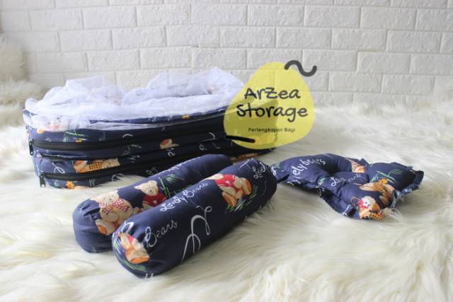 Harga Kasur bayi kelambu set bantal guling lipat bears lovely navy