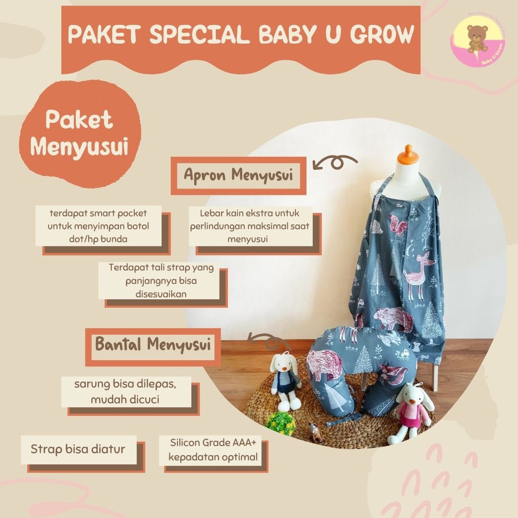 Kelebihan - Kelebihan membeli [CUSTOM MOTIF] Paket Menyusui - Bantal & Apron menyusui - Katun Catra - Baby U Grow di Toko ini