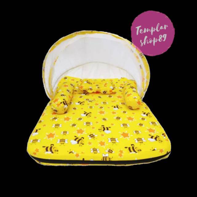 Harga Kasur bayi set kelambu bantal guling model lipat lebah kuning PREMIUM